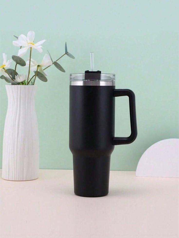 This 40 oz Black Tumbler from Tumblerry is the ultimate blend of style and performance, unbreakable, premium stainless steel, it utilizes double-wall vacuum insulation to keep your drinks icy cold for over 24 hours or piping hot for 8 hours. The lightweight design and ergonomic carry handle make it easy to transport, while the tapered base ensures it fits perfectly in most car cup holders. With a secure, convenient straw lid, this tumbler provides reliable, all-day hydration in a sleek, modern finish.